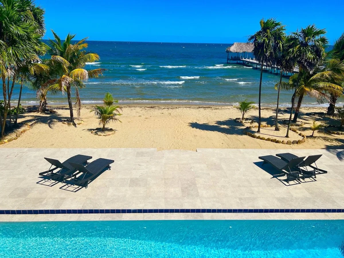 Villa Shore is a spacious five bedroom private beachfront Villa located on the Caribbean Sea. Large pool on the beach with swim up palapa bar and outdoor shower. Enjoy the sunrise overlooking our breezy palm tree lined beach.